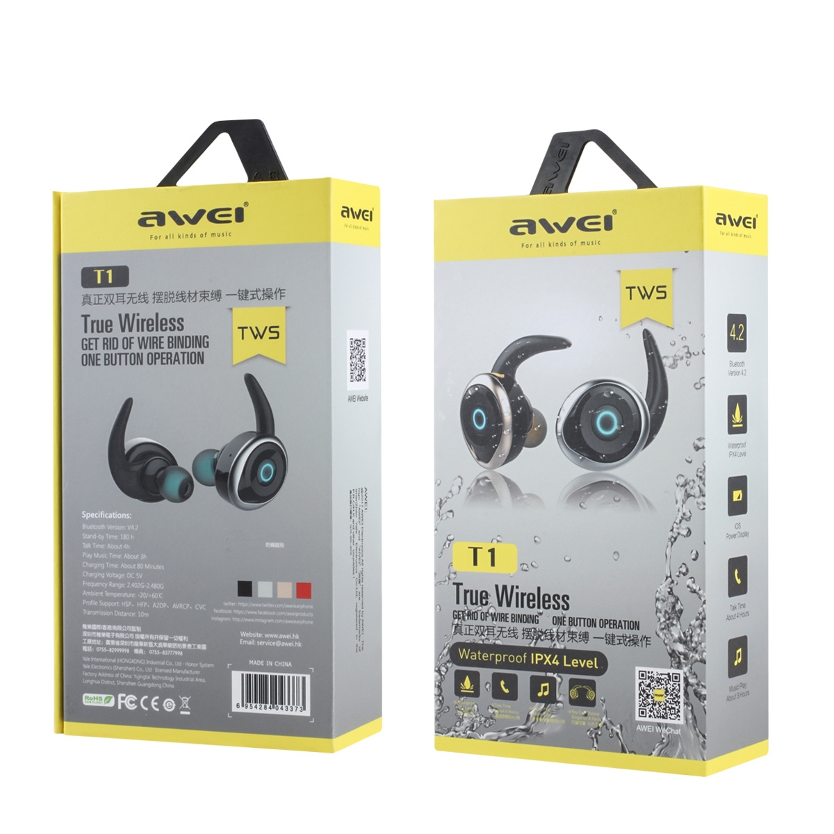 Awei T1 TWS True Wireless Bluetooth Waterproof Earbuds
