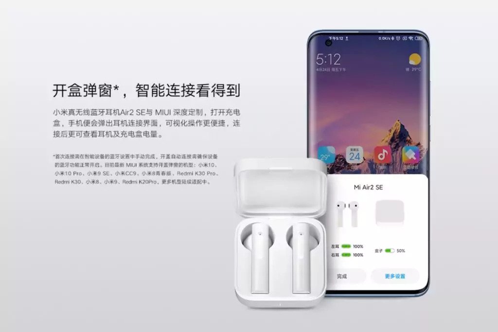 - Bluetooth 5.0 is used for the connection to your phone, the signal is transmitted simultaneously to each bud (which offers a more stable connection). In terms of acoustics, the Xiaomi Air2 SE TWS Bluetooth Earphones have a built-in 14.2mm large-size moving coil which supports AAC codec.