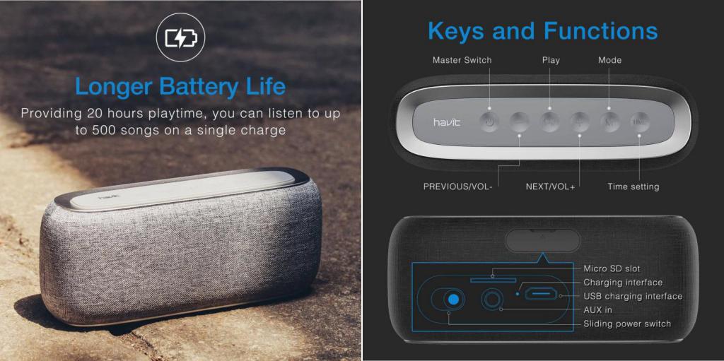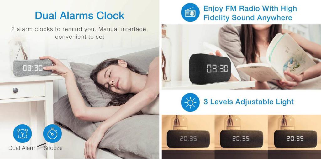 HAVIT M29 Bluetooth Speaker with Radio and Clock can be converted into a night alarm. It may be convenient to set up two alarm clocks. You will not miss meetings and appointments with this loud clock.