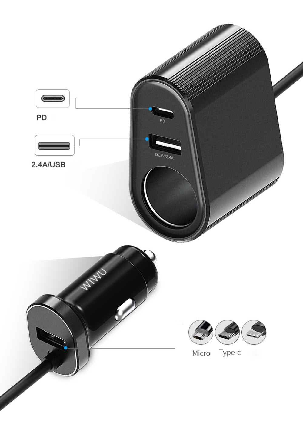 WiWu QC300 Multi-Functional Car Charger PD3.0 42W