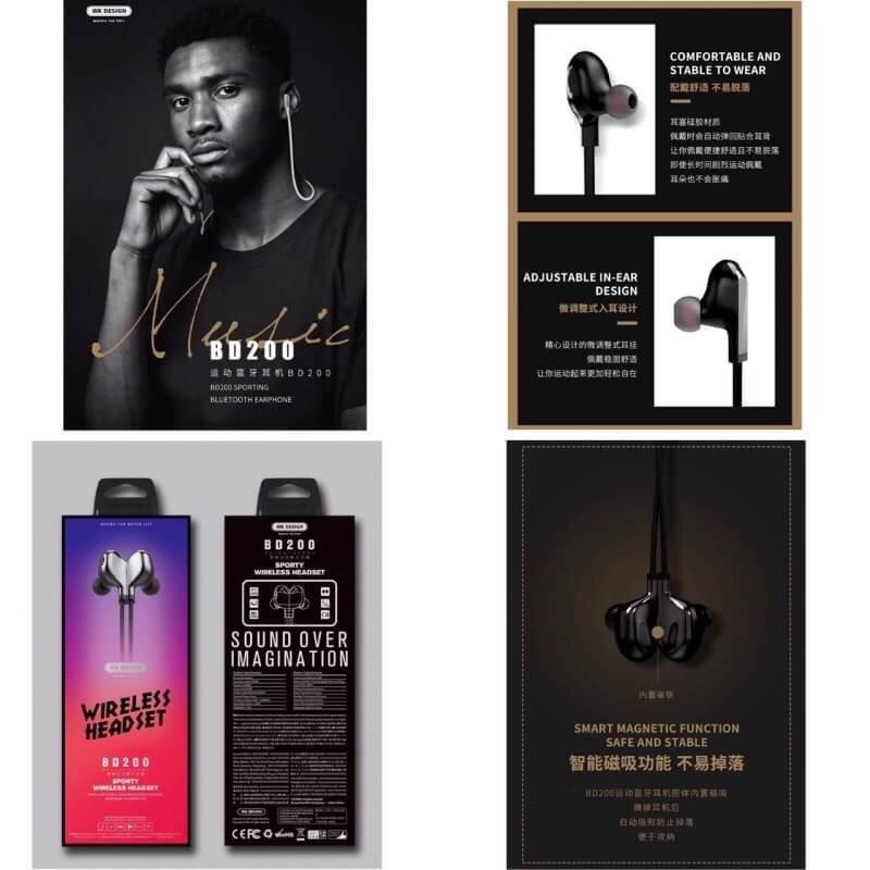 WK BD200 Magnetic Waterproof Wireless Bluetooth Headphone