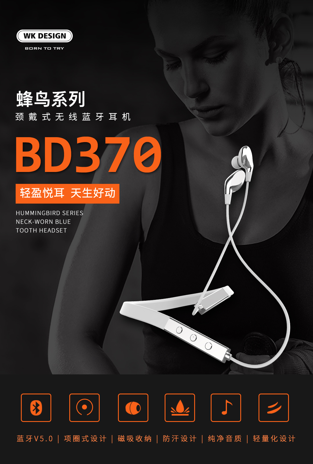 WK BD370 Neck Wearing Mounted Binaural Bluetooth Earphone